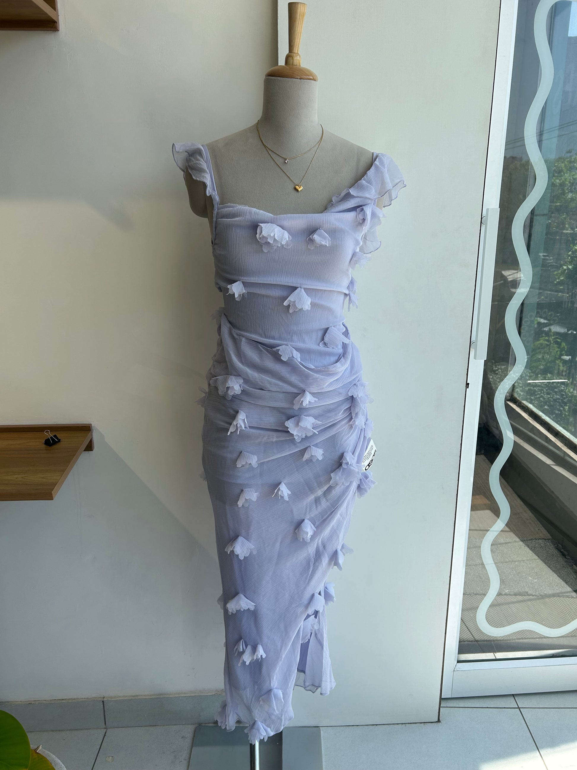 ASOS Flower Draped Ruffle Sleeve Dress